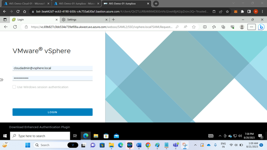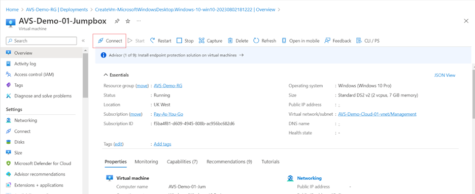 Virtual machine name: AVS-Demo-01-Jumpbox
