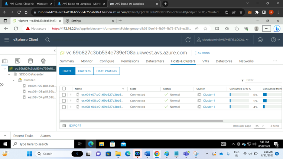 26. Now you will be logged into your vSphere server of Azure VMware solution Private cloud. You can manage virtualized data centers from here.