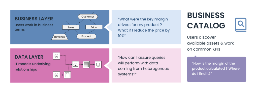 Additionally, the new data catalogue and expanded business catalogue support demand-driven modelling, complementing the traditional data-driven modelling. The business semantics in the business catalogue bridge the two approaches.