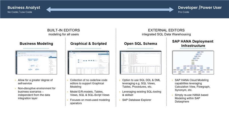 As a result, SAP Datasphere offers business users new possibilities to create analytical models tailored to their specific needs within a secure environment. Whether the underlying data originates from the company's ERP system, third-party systems, data lakes, public data providers, or other hyper scalers like AWS, Azure, or Google Cloud, SAP Datasphere enables logical data warehousing at its finest. This paradigm allows SAP Datasphere to support the unique capabilities of its users.