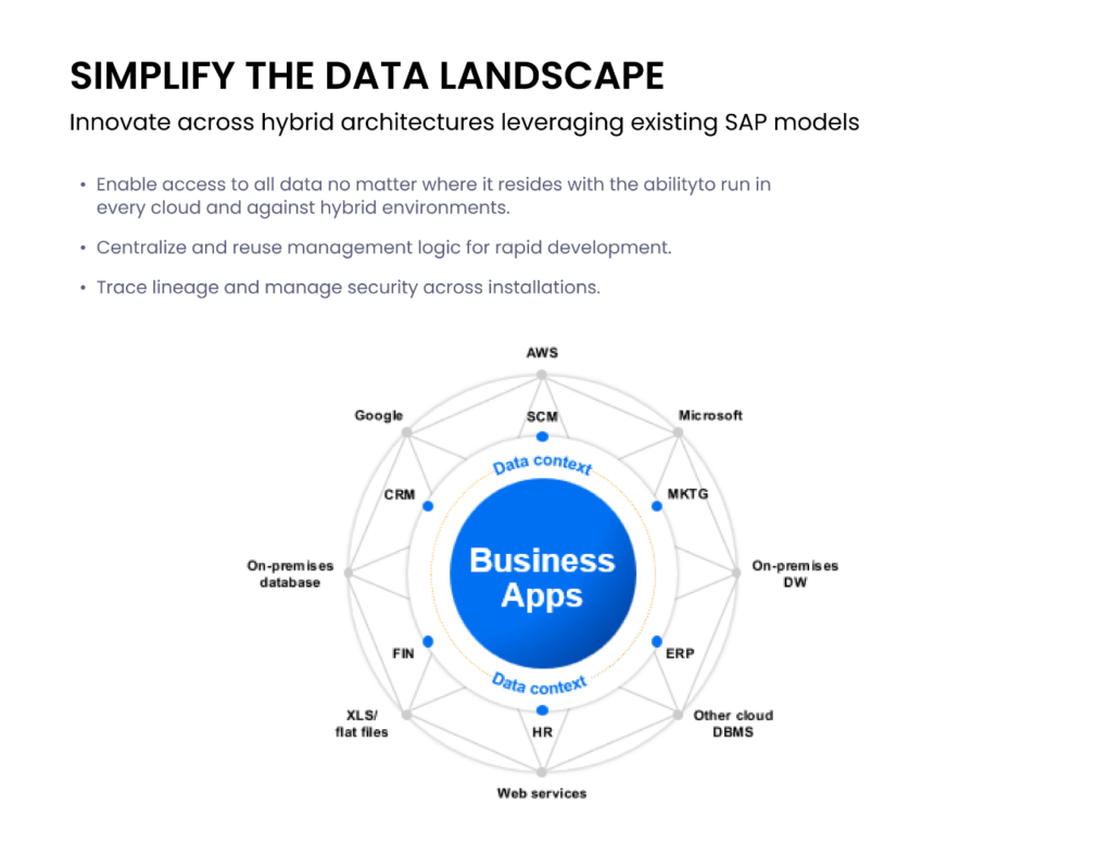Building on its commitment to data innovation, SAP recently unveiled SAP Datasphere. This comprehensive data management solution empowers companies to unlock the true value of their information. By streamlining data unification, SAP Datasphere enables businesses to integrate data from both internal SAP systems and external third-party sources. Strategic partnerships with leading data and AI players like Collibra, Confluent, Databricks, and DataRobot further bolster this capability. Notably, SAP Datasphere simplifies complex enterprise data landscapes. By leveraging a combination of SAP's tools and those from its partners, the solution grants access to all data assets while ensuring the critical preservation of business context and logic.