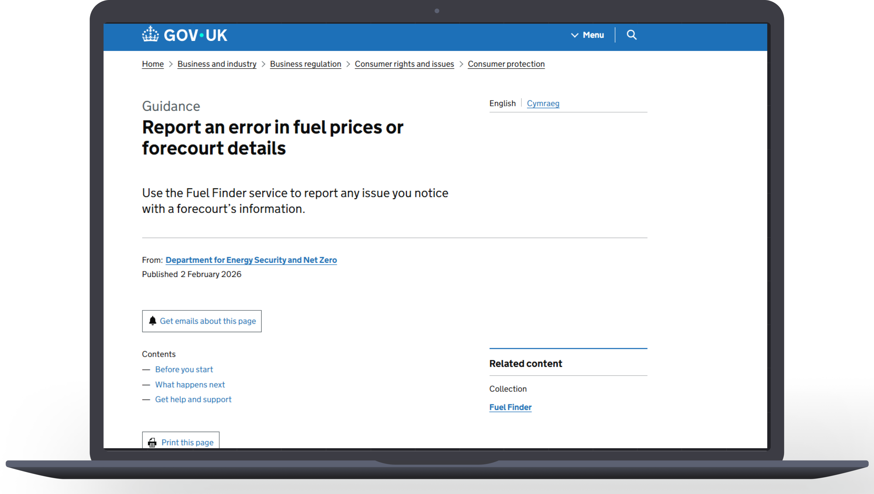 Every petrol filling station registers once with the Fuel Finder service. Registration captures statutory business and site information and verifies that submissions are made by authorised individuals. This creates a validated national register of petrol filling stations - something that did not previously exist in the UK.