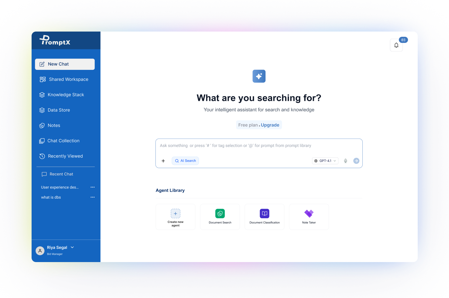PromptX includes monitoring dashboards, conversation logs, and audit trails that provide visibility into agent behaviour and data access. It also offers usage analytics to track search patterns, high-engagement content, and identify knowledge gaps across teams.